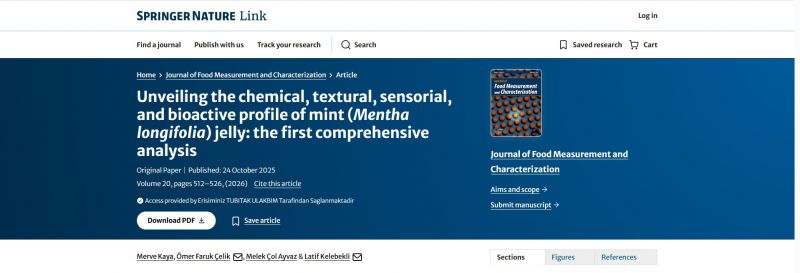 Yeni Kurulan Disiplinlerarası Gıda Güvenliği Anabilim Dalından Uluslararası Yayın Basarısı